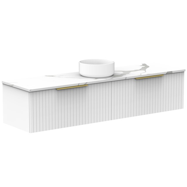 Ashley – A contemporary twist on a classic style. The Ashley vanity blends the best of timeless design and coastal-cool. The v-groove drawer front detailing creates visual interest and pairs perfectly with the slimline Blaze handle.