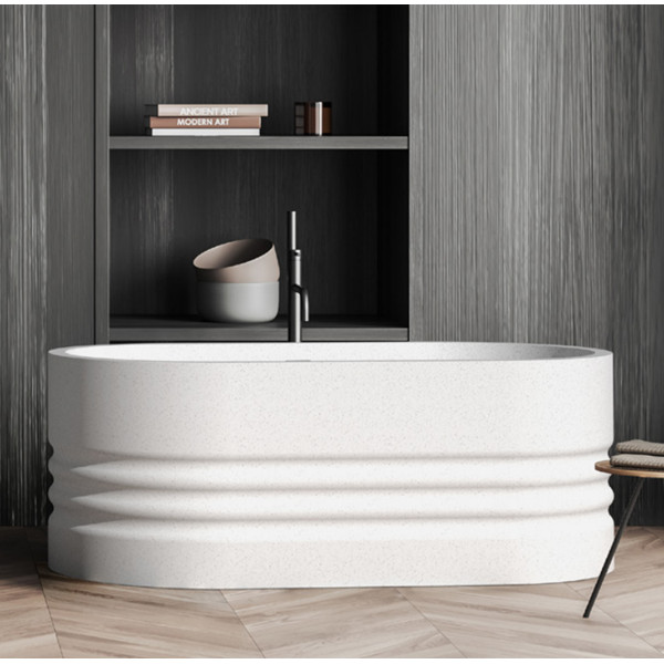 Emblematic of the textural qualities of the humble corrugated iron, the Ode Collection references the iconic undulations in a series of subtle, minimalistic lines. Elegant in its restraint, the collection was designed to echo the adaptability of its muse, suited to an array of settings – industrial, minimal, maximal, traditional or modern. The collection features a freestanding bath, countertop and pedestal basin, each hand crafted from our sustainable, apaiserMARBLE®.