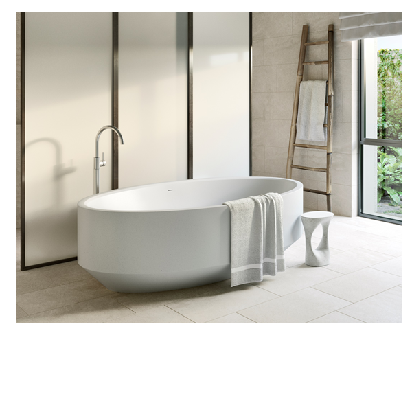 The Zen Oval Bath creates a sculptural balance between hard and soft lines, whilst offering an indulgent and luxurious Zen-like bathing experience.