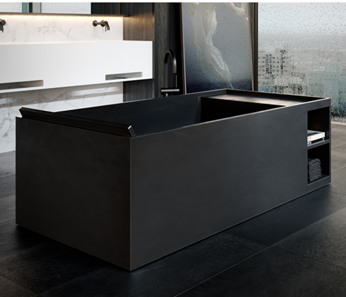 The Grand’s ergonomic recline is conducive to the most luxurious bathing experience imaginable. A practical shallow tray with separate storage compartments delivers practicality, while a fine etched lip surrounding conveys a subtle attention to detail.