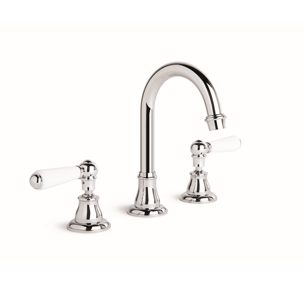 Brodware – Neu England – 1.8000.00.4.01 – Basin Set with Swivel Spout & White Porcelain Levers – Chrome