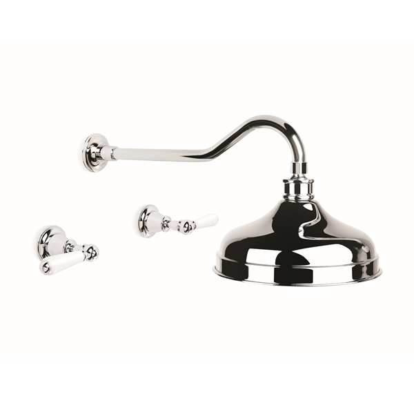 Brodware – Neu England – 1.8011.02.4.01 – Shower Set with 200mm Ball Joint Rose and White Porcelain Levers – Chrome