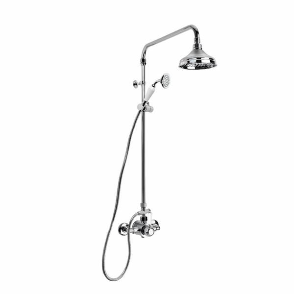 Brodware – Neu England – 1.8014.03.4.01 – Exposed Shower Mixer with 150mm Rose, Hand Shower, Diverter & White Porcelain Lever – Chrome