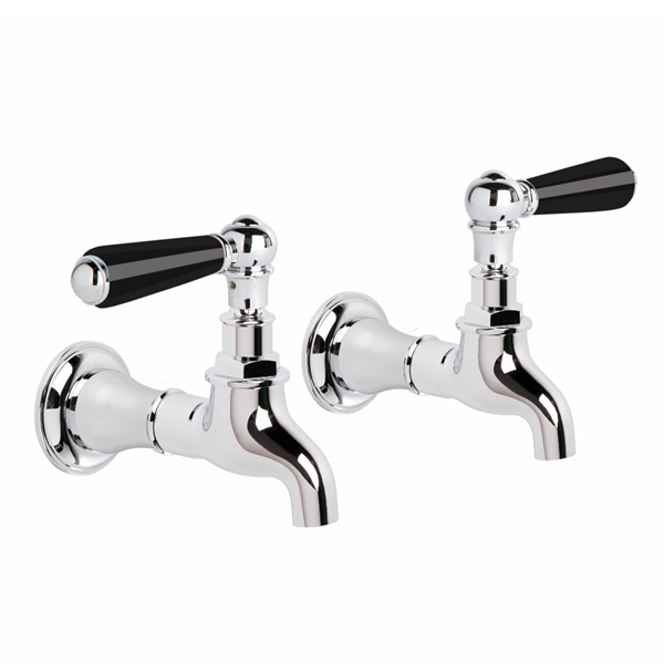 Brodware – Neu England – 1.8015.00.5.01 – Bib Taps Female, Pair with Black Porcelain Levers – Chrome