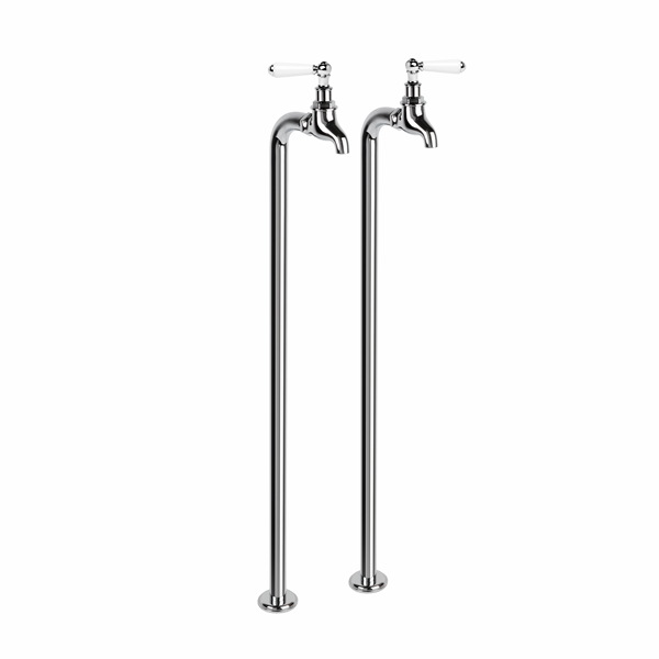 Brodware – Neu England – 1.8016.02.4.01 – White Porcelain Lever Floor Mounted Bib Taps Set – Chrome