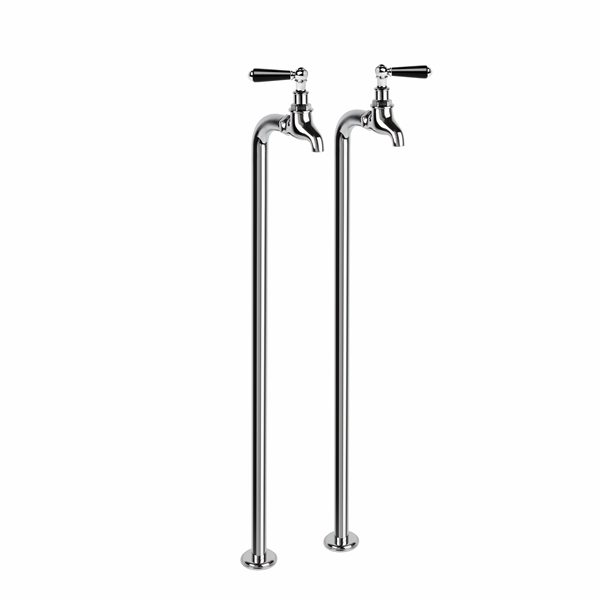 Brodware – Neu England – 1.8016.02.5.01 – Black Porcelain Lever Floor Mounted Bib Taps Set – Chrome