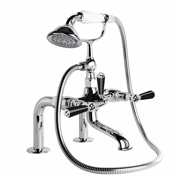 Brodware – Neu England – 1.8021.00.5.01 – Hob Mount Bath Mixer with Hand Shower, Black Porcelain Levers & Diverter – Chrome