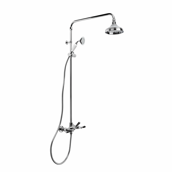 Brodware – Neu England – 1.8025.04.5.01 – Exposed Shower Set with 150mm Rose, Hand Shower, Black Porcelain Lever & Diverter – Chrome