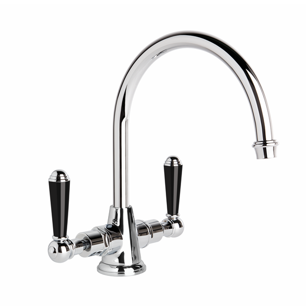 Brodware – Neu England – 1.8030.00.5.01 – Kitchen Mixer with Swivel Spout and Black Porcelain Levers – Chrome