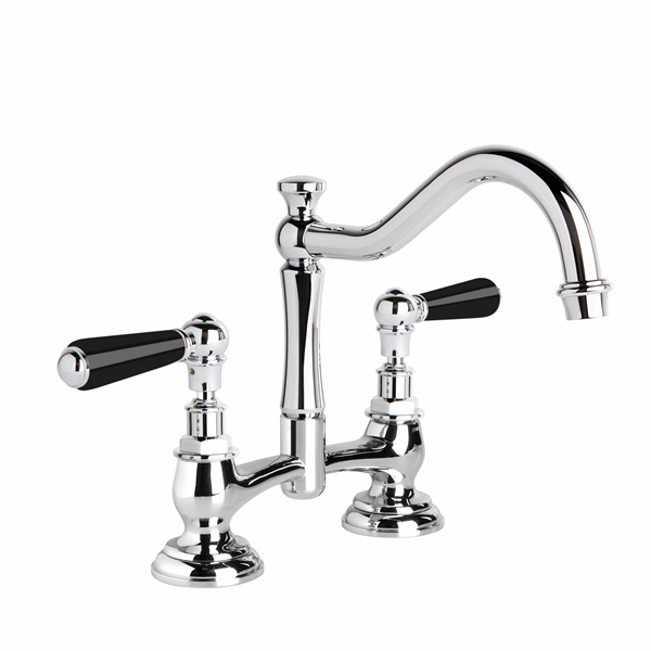 Brodware – Neu England – 1.8031.02.5.01 – Kitchen Set with Traditional Swivel Spout & Black Porcelain Levers – Chrome