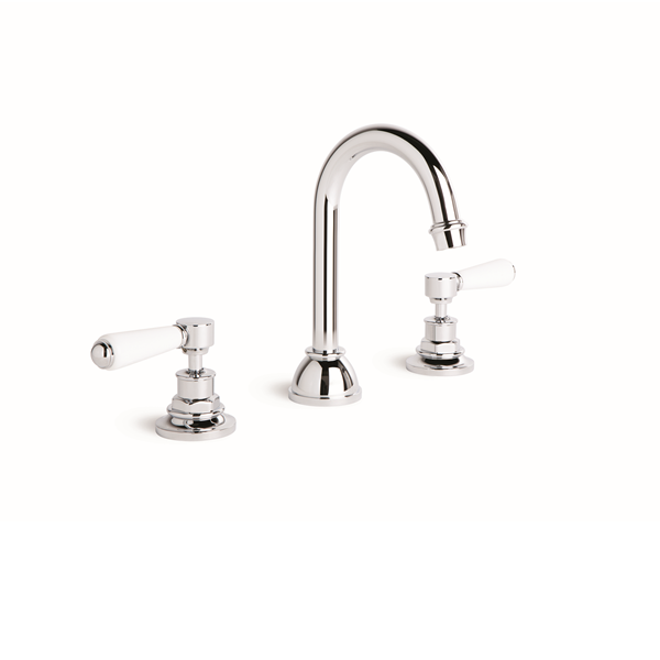 Brodware – Winslow – 1.8100.00.4.01 – Basin Set with Swivel Spout & White Porcelain Levers – Wels 6 Star Flow Rate 4.5L/min – Chrome