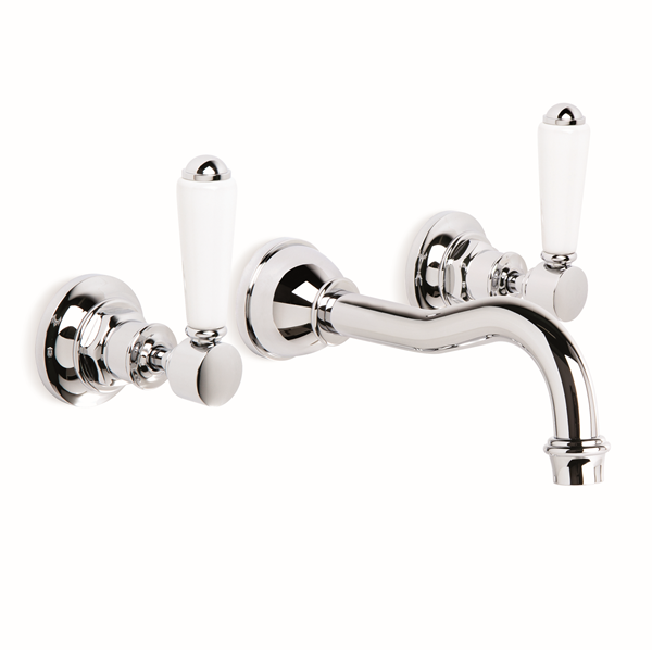 Brodware – Winslow – 1.8105.00.4.01 – Wall Set with 165mm Spout & White Porcelain Levers – Chrome