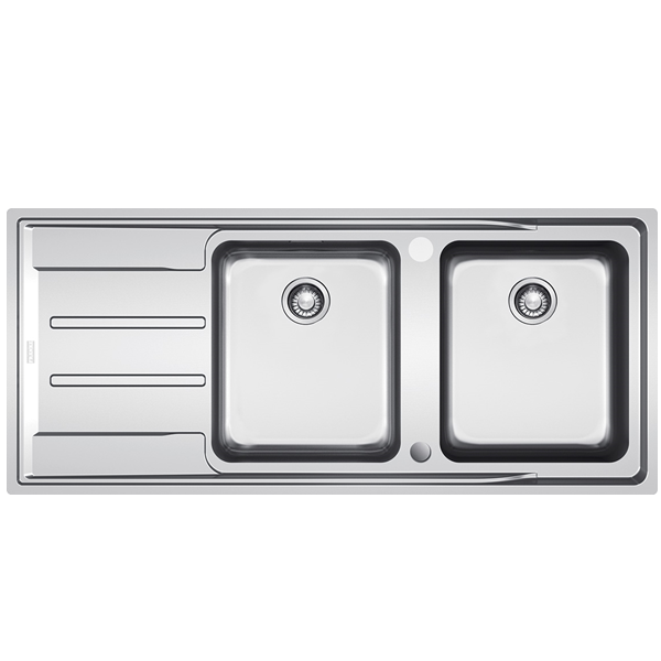 This Franke sink will add contemporary flair to your kitchen space. Boasting a double bowl configuration, you can wash in one bowl and rinse in the other. Available in left hand and right hand drainer configuration.
