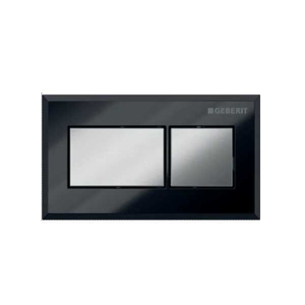 Geberit – Kappa – 115.932.KV.1 – Pneumatic Square Buttons – Brushed Chrome Plate with Black Trim