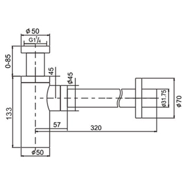 Brodware – Wastes and Traps – 1.7034.02.0.01 – Bottle Trap Round with 32mm-40mm PVC Adaptor – Chrome