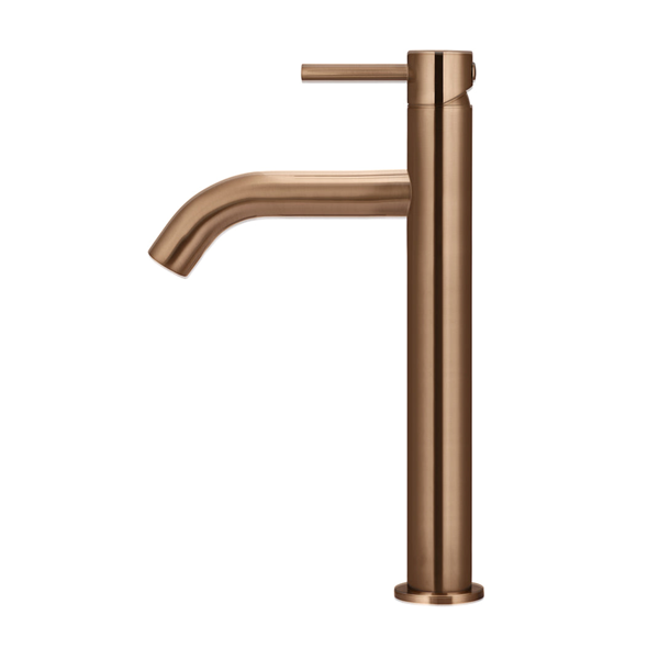 Meir’s Piccola range of tapware is the ultimate fusion of sleek design and contemporary aesthetic. This petite range brings a sophisticated look to any bathroom space; with a contoured spout. This tall mixer is ideal for countertop and vessel basins.
