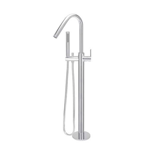 The Round Paddle Freestanding Bath Spout and Hand Shower is intuitively designed with practicality in mind. It features a full 360-degree swivel spout motion to create a spacious and luxurious experience.