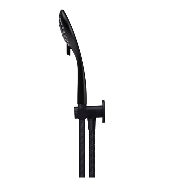 Designed to be used as a complementary piece for the shower or bathtub, this unit features a stunning electroplated matte black hand shower on a convenient swivel connection with a 1.5m hose.