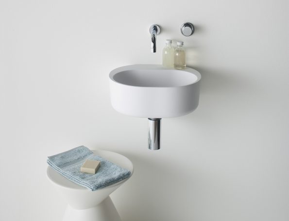 The Lilli 400 basin with its smooth curves is a sophisticated piece for a modern bathroom design and is particularly suited to small powder rooms. Manufactured in solid surface it has a smooth matt finish that is durable and easy to maintain, ideal for residential and commercial applications.