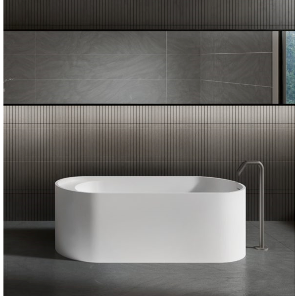 The Lune 1700 freestanding bath is a generous and sculptural centrepiece that is luxuriously deep and features an overflow for peace of mind.  The Lune bath has a functional integrated hob at one end providing practical surface area.  In Australia, Lune is available exclusively through select distributors.