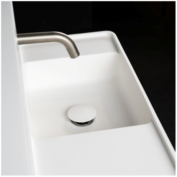 - Supplied with a polished chrome pop-up waste, with optional white solid surface plug also available.
