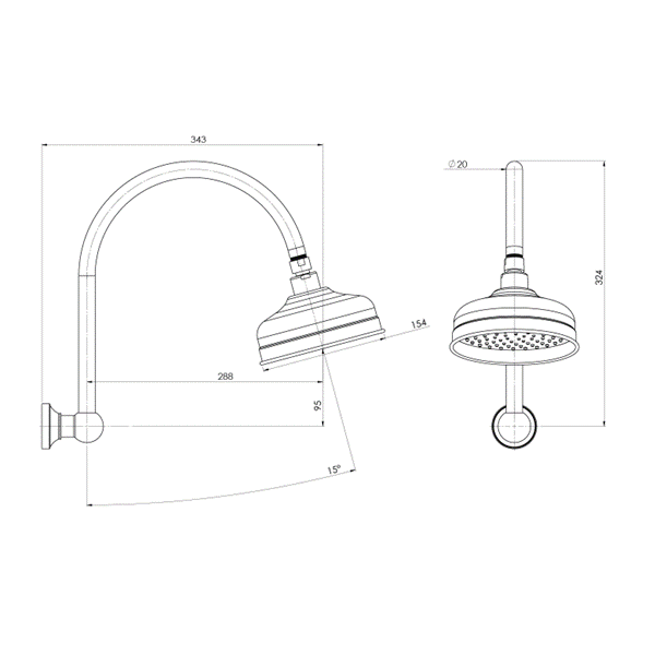 Phoenix – Cromford – 134-5300-00 – High-Rise Shower Arm and Rose – Chrome