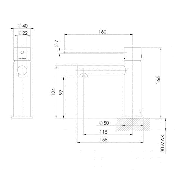 Phoenix Vivid Slimline Collection comprises of a thin, elegant, fixed pin extended lever design to complement any contemporary space. Matching tapware, showers and accessories to complete the look.