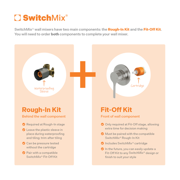 - Must be paired with SwitchMix Shower / Wall Mixer Rough-In Kit