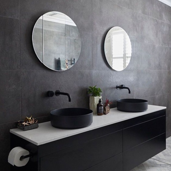 - Round mirror with cabinet behind (520×520 Cabinet behind)