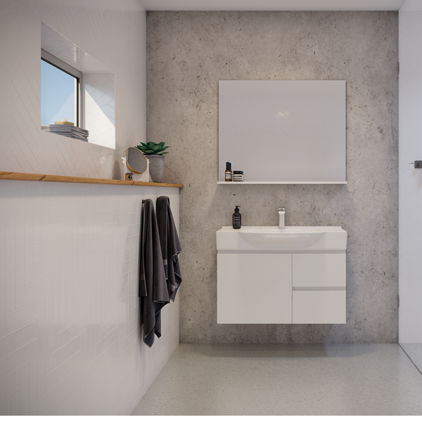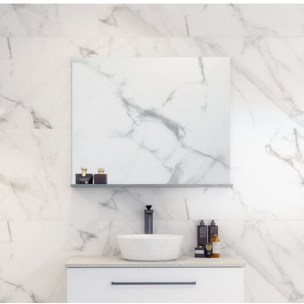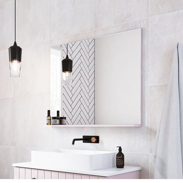 The Essence is a gorgeous on trend bathroom mirror design with shelf.