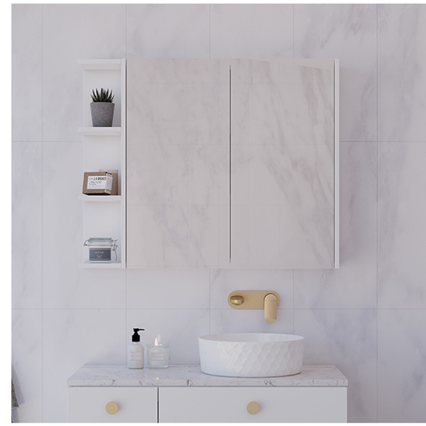 - On-trend exterior display shelves at each end. Usable as left or right shelves