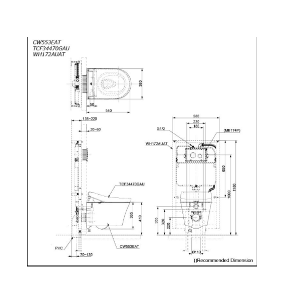 TOTO – CW553EAT + TCF34470GAU – Wall Hung Toilet + S5 Washlet