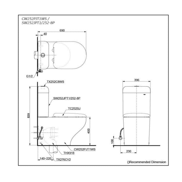 - Water Use: 4.5L / 3L Rough-in: 140~220 mm (THX918)