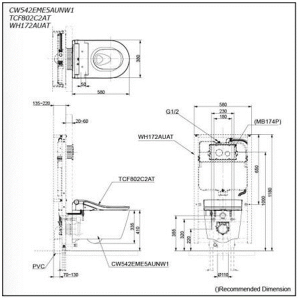 • Compatible with a Concealed Tank (4.5L / 3L) (WH172AUAT)