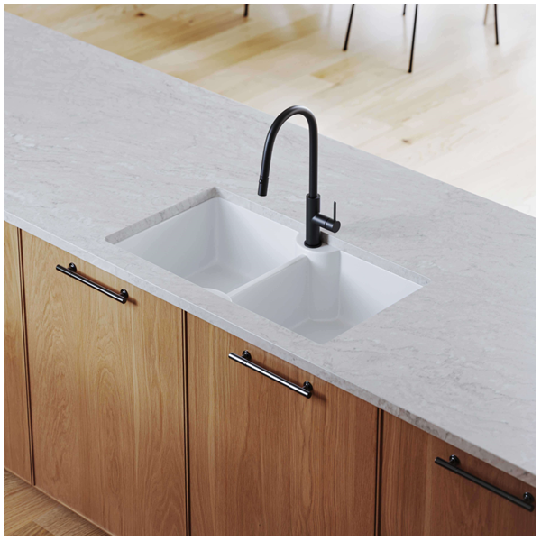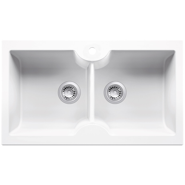 The Cuisine 86 x 50 Double Bowl with taphole is perfect for the modern kitchen. This sink is a great luxury alternative to a stainless steel or granite sink boasting two large bowls and a landing for a taphole.