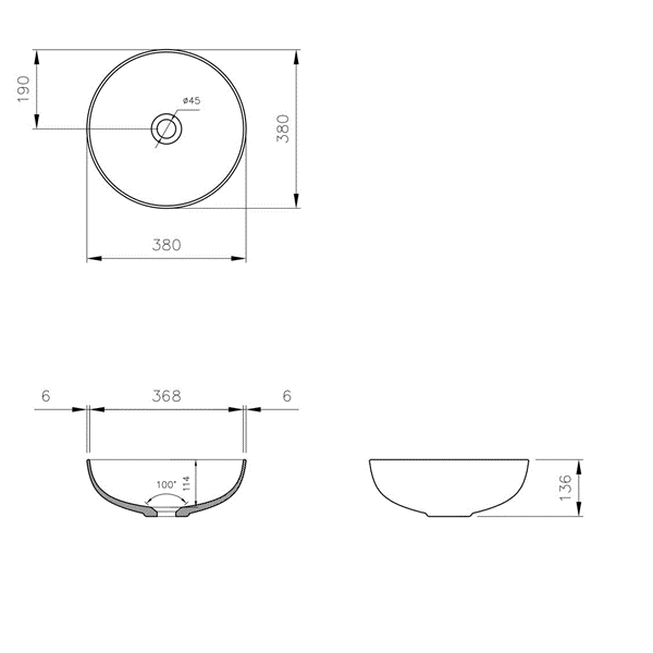 Turner Hastings – Fino – FI3790CTB – 379 Above Counter Basin – Gloss White