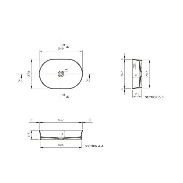 Turner Hastings – Fino – FI5490CTB – 55 X 38 Above Counter Basin – Gloss White