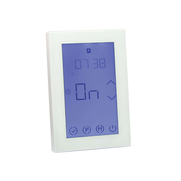 The timer supports 4 switching times per day (2 on/2 off) and features large, easy-to-read characters. Its sleek white glass design fits any bathroom decor. Using this timer ensures your towel rail is only on when needed, providing warm, dry towels while reducing energy costs.