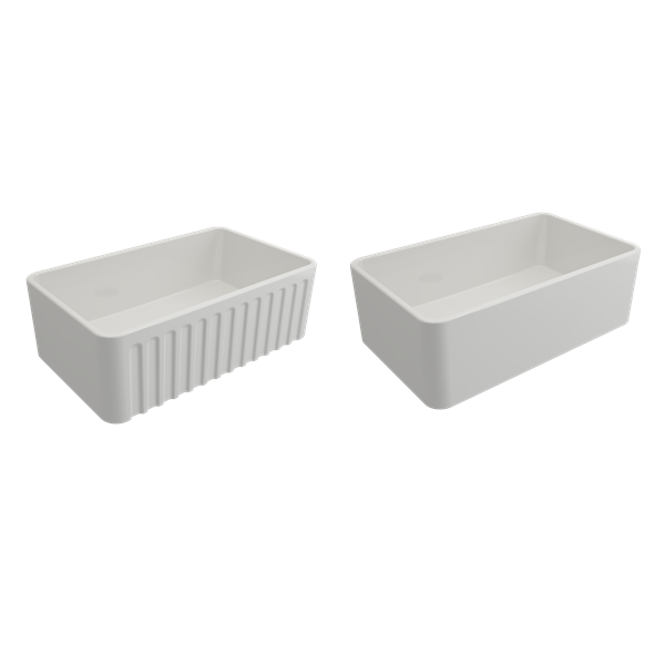 The Novi Single 76 boasts an intelligent double-sided design, ribbed front on one side and flat front on the other. This allows you to install it either way to suit your kitchen design. The ribbed side gives it a Heritage, handmade look, while the flat side is more subtle, working well in contemporary kitchens.