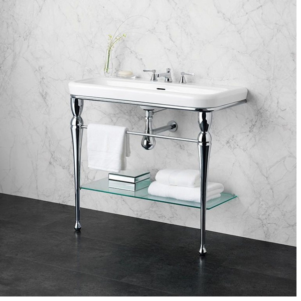 The Victoria + Albert Candella 100 washstand is perfectly suited to modern, traditional and transitional styled bathrooms. The smooth polished chrome legs are topped with a Victoria + Albert Lario 100 solo Quarrycast basin.