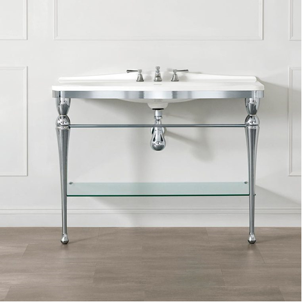 The Victoria + Albert Candella 114 washstand is perfectly suited to modern, traditional and transitional styled bathrooms. The smooth polished chrome legs are topped with a Victoria + Albert Mandello 114 solo Quarrycast basin.