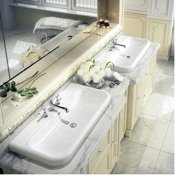 The Victoria + Albert Lario 100 Solo is a traditional basin with subtle rim detailing that can be countertop mounted or semi recessed.