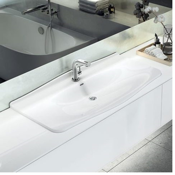 The Victoria + Albert Mandello 114 Solo is a traditional basin with subtle rim detailing that can be countertop mounted or semi recessed.