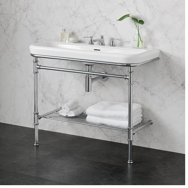 The Victoria + Albert Metallo 100 washstand is perfectly suited to modern, traditional and transitional styled bathrooms. The timeless polished chrome frame is topped with a Victoria + Albert Lario 100 solo Quarrycast® basin.