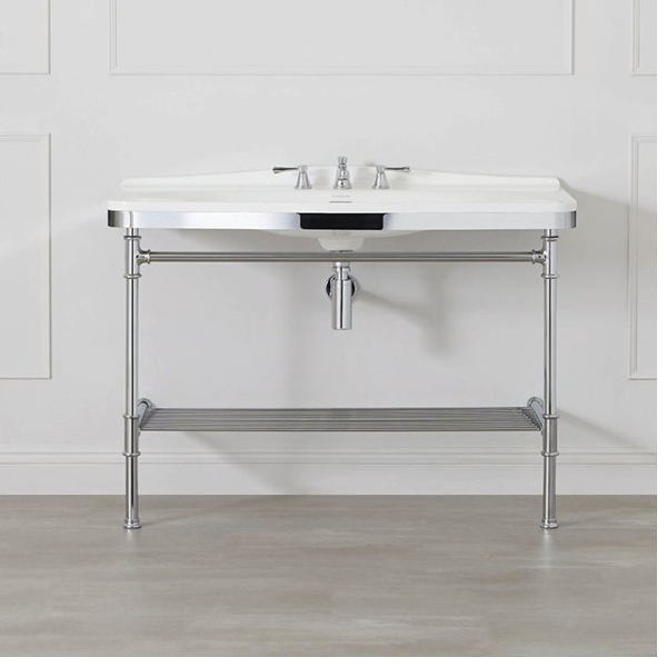 The Victoria + Albert Metallo 114 Quartz washstand is perfectly suited to modern, traditional and transitional styled bathrooms. The timeless polished chrome frame is topped with a Victoria + Albert Rossendale 91 Quarrycast® basin.
