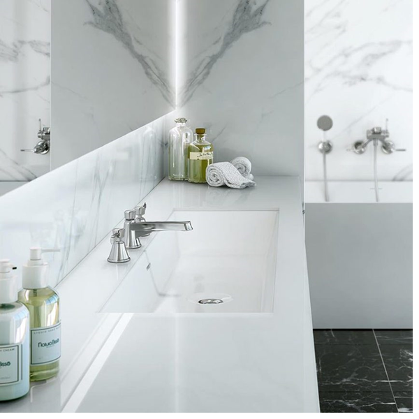 The Victoria + Albert Rossendale 122 recess mounted basin is the perfect match for the either our modern or traditional freestanding bath ranges. A generously sized double-width trough basin that can be dropped in or undermounted.