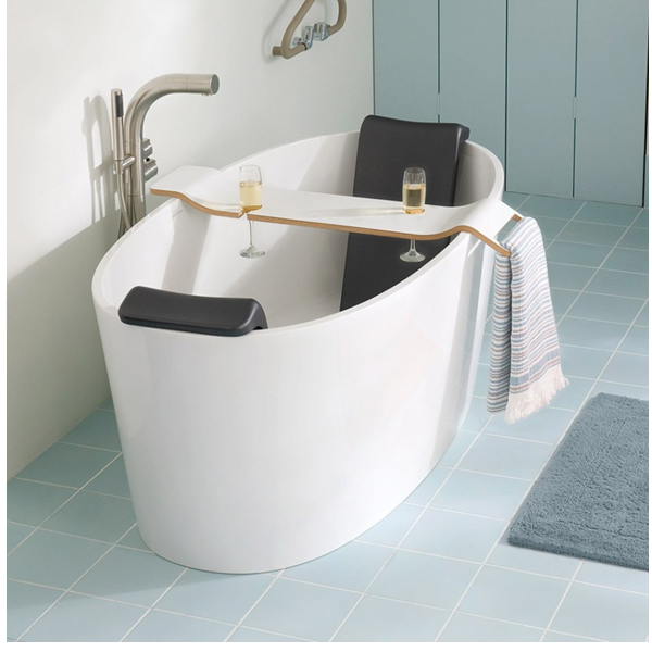 The Tombolo 10 is a contemporary and contoured bath rack. The integrated glass holders and flat surfaces are perfect for champagne or wine glasses, small food platters and books, phones or tablets.